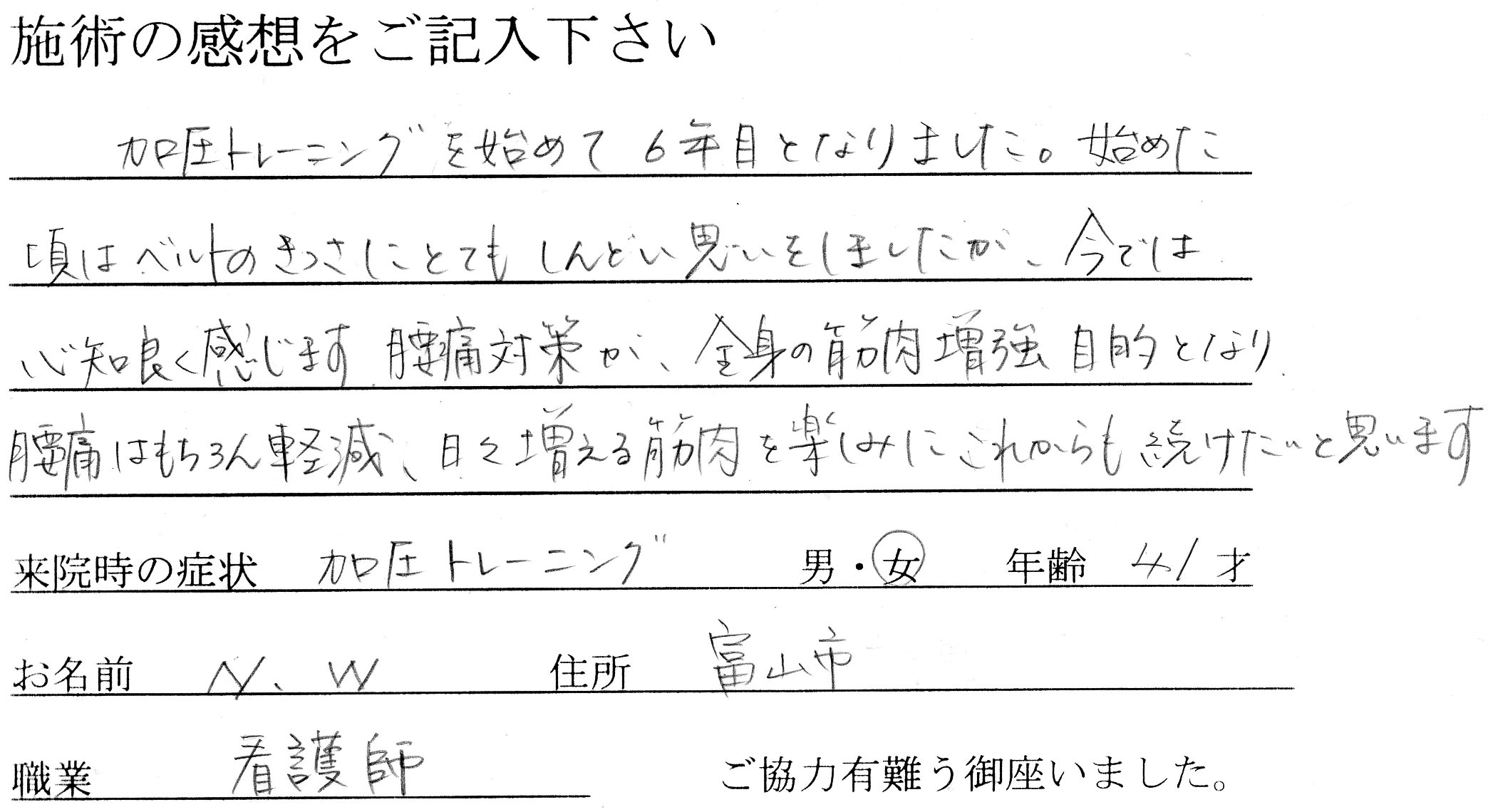 腰痛はもちろん軽減、日々増える筋肉を楽しみにこれからも続けたいと思います。