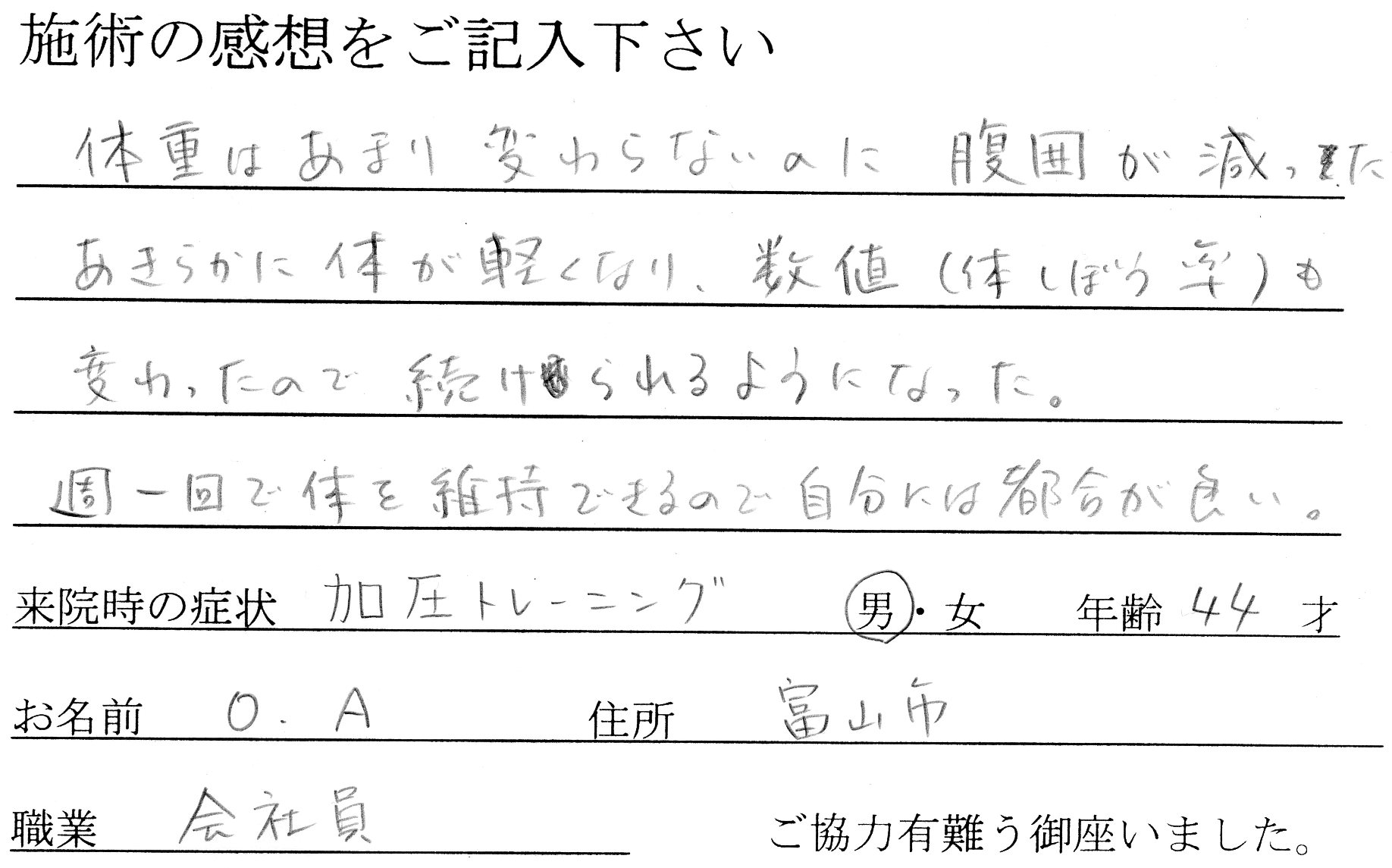 お客様の声(加圧トレーニング)44才 富山市