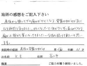 (産後の骨盤矯正) 31才 富山市 K.E様